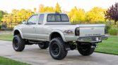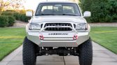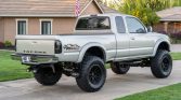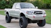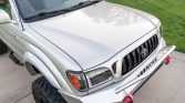 This 2003 Toyota Tacoma SR5 Xtracab 4×4 is powered by a 3.4-liter 5VZ-FE V6 linked with a five-speed manual transmission, a dual-range transfer case, and a locking rear differential. Finished in Lunar Mist Metallic and equipped with the TRD Off-Road Package, it has been modified with a Rough Country suspension lift, 17” Fuel Off-Road wheels, and slotted front disc brakes as well as an aftermarket front bumper and exterior lighting. Additional features include power steering, air conditioning, a heater, cruise control, a Jensen touchscreen stereo, a tilting steering column, and power windows, door locks, and mirrors.