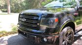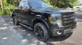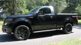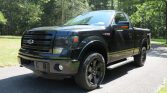 This 2014 Ford F-150 FX4 Tremor is a standard-cab short-bed 4×4 example that was purchased by the selling dealer on BaT in February of 2024. The truck is powered by a 3.5-liter EcoBoost V6 linked to a six-speed automatic transmission, a dual-range transfer case, and an electronically locking rear differential. Finished in Tuxedo Black Metallic over black leather and Alcantara upholstery, it is equipped with the Tremor Plus and FX Appearance packages as well as 20″ alloy wheels, HID headlights, side steps, a vinyl tonneau cover, a receiver hitch, a power-adjustable driver’s seat, air conditioning, a CD stereo, and SYNC infotainment with navigation.