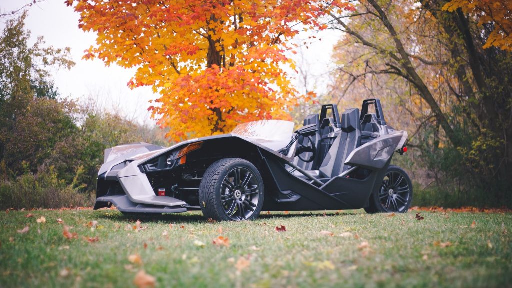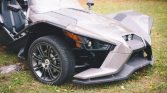 This 2015 Polaris Slingshot has just under 1000 miles and was purchased new by the seller. This 3-wheeler remains unmodified and is powered by a GM-sourced 2.4 liter Ecotec inline-four paired to a 5-speed manual transmission. With its three wheels, the Slingshot is classified as a motorcycle and depending on the state might require a motorcycle license and helmet for use. Because of this designation, Polaris was able to design a vehicle with an optional windshield and no doors or roof.