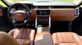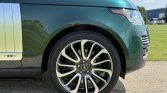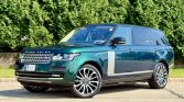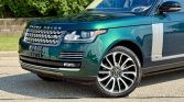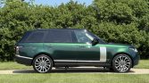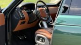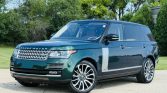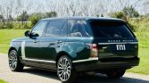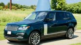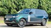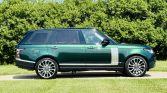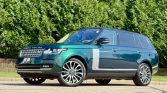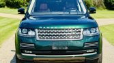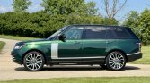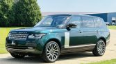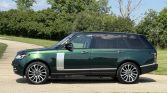This 2016 Land Rover Range Rover Autobiography has 61k miles. It is finished in Spectral British Racing Green with a black roof over brown leather and is powered by a supercharged 5.0-liter V8 linked with an eight-speed automatic transmission and a two-speed electronically controlled transfer case. Features include the Four-Zone Climate Comfort Pack, adaptive xenon headlights, a panoramic roof, 22″ diamond-turned wheels, Terrain Response, heated and ventilated front seats, heated and ventilated rear seats, a Meridian surround sound system, and an 8″ touchscreen with navigation.