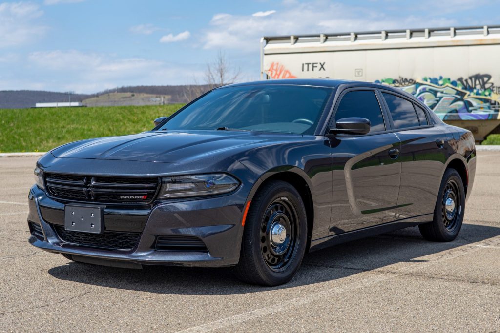 This 2017 Dodge Charger Pursuit AWD is finished in Maximum Steel over black cloth and vinyl and is powered by a 5.7-liter Hemi V8 paired with a five-speed automatic transmission. It features an engine…