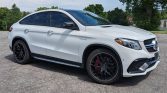 THIS… is a 2017 Mercedes-AMG GLE 63 S Coupe, finished in Polar White with a black interior.